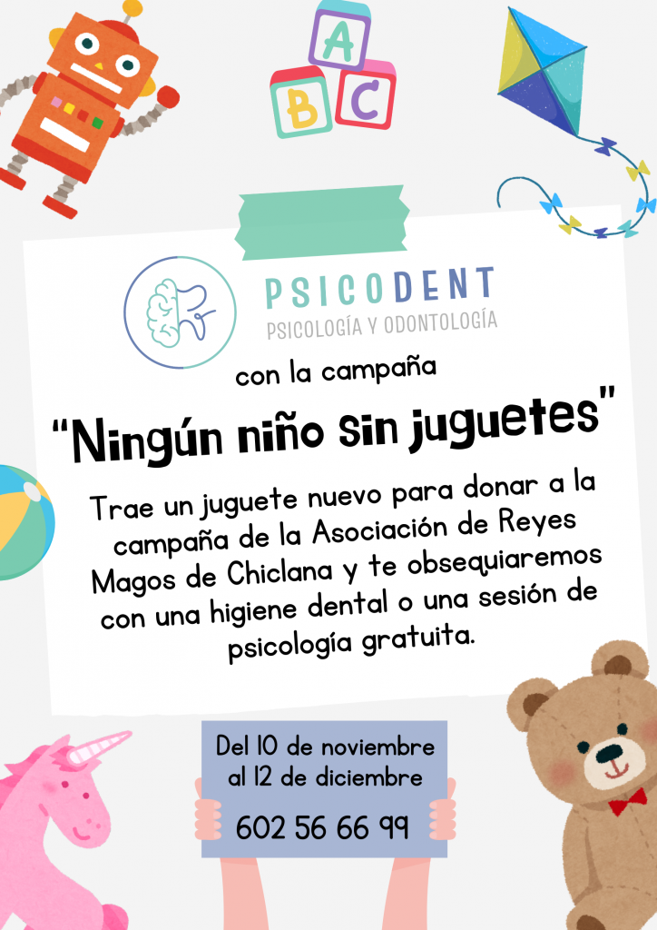 En PSICODENT nos unimos con mucho cariรฑo a la campaรฑa โ€œ๐—ก๐—ถ๐—ป๐—ดรบ๐—ป ๐—ป๐—ถรฑ๐—ผ ๐˜€๐—ถ๐—ป ๐—ท๐˜‚๐—ด๐˜‚๐—ฒ๐˜๐—ฒ๐˜€โ€ de la Asociaciรณn de Reyes Magos de Chiclana ๐Ÿค